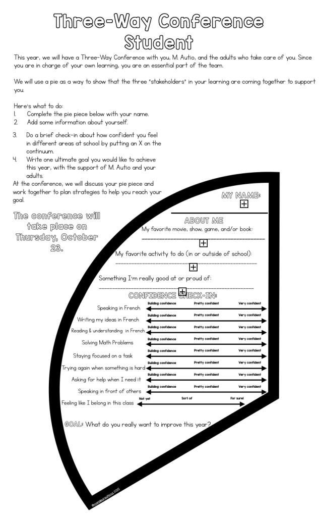 The Three-Way Conference Pie has evolved over the years, but its purpose remains constant: to center the student’s voice in their learning journey.